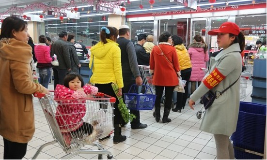 活动描述: 乐家超市喜迎5周年,为回馈广大新老顾客,特开展“共享美好生活,乐家与您相伴”活动,为让更多消费者了解商家信息,参与口碑传播,使用芸客红包系统,超市提前两天在门口摆放红包墙,引导顾客扫码,凡扫码成功者即可获取一张满减优惠券(满99减5元、满199减10元、满299减20元,优惠券直接生成编号,消费者结账时直接出示红包电子码,操作简单方便)。 活动两天时间扫码人数突破700人,曝光量达10万人次,相比往日的活动促销,足足翻了10倍。因为客流量太大,导致超市8个收银台都排满了长队,等待结账,场面可谓是非常壮观。